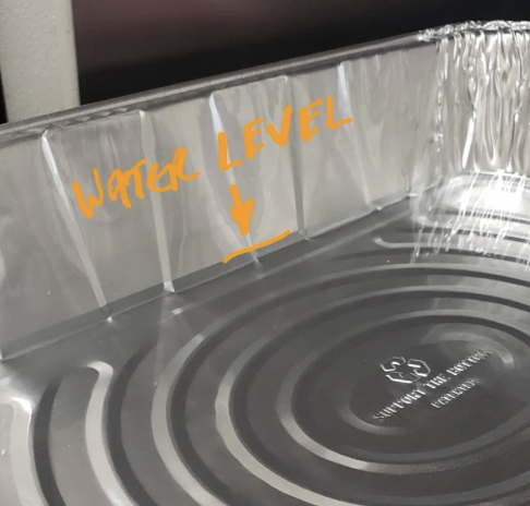 8. Note: check aluminum pans with water to make sure they still container water every 30-45 min. If they are low on water add more water to fill bottom.